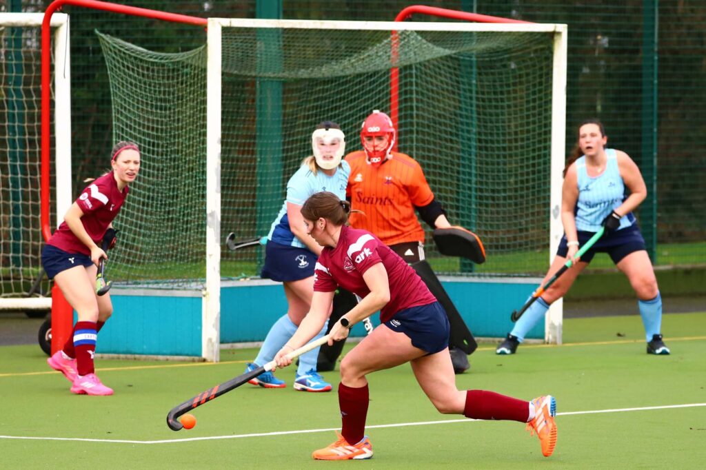 Just three minutes in, a powerful ball from Karen Timby in the defending 23, found Honor Moore at the halfway line, who carried the ball to the D where she slipped it left to Charlotte Maplethorpe to slot home.