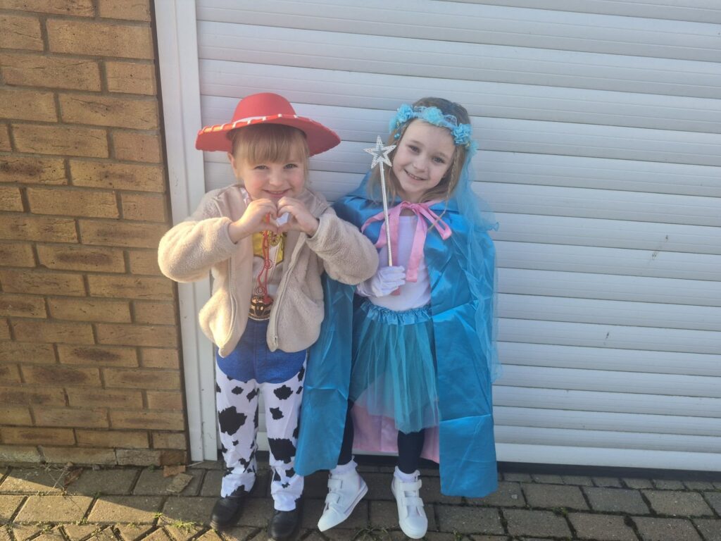 Scarlett Houghton (7) little red riding hood. Jade Houghton (5) the very hungry caterpillar. Spalding.