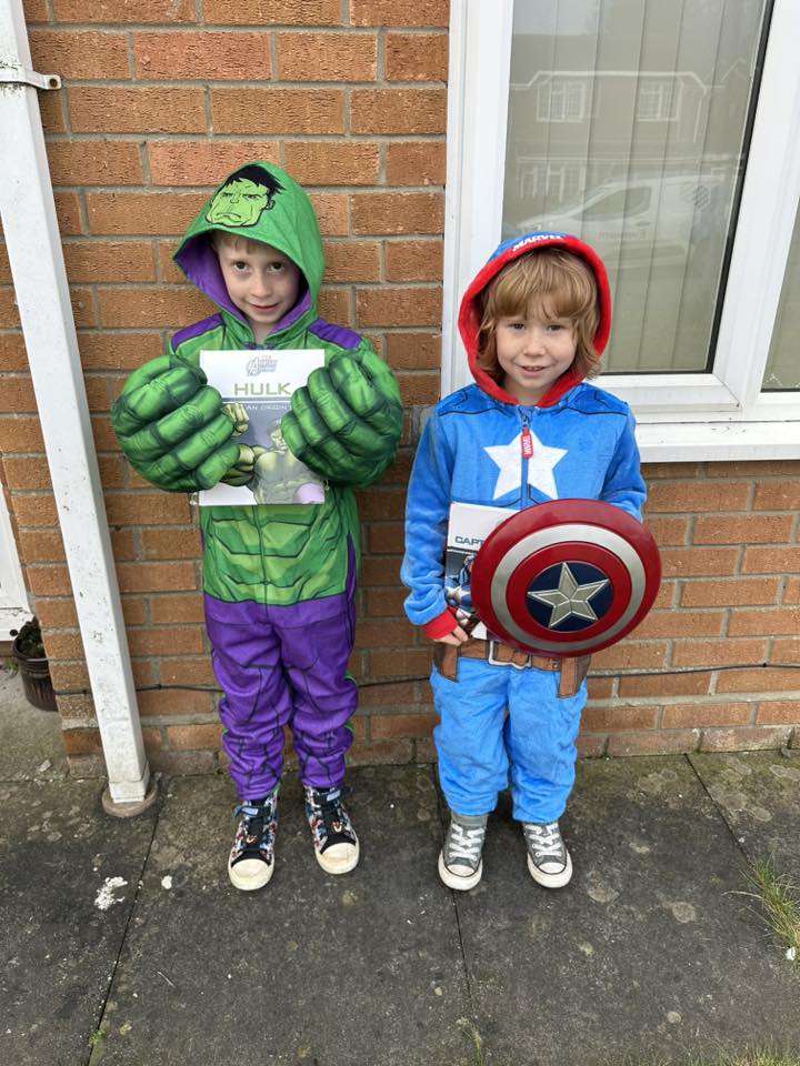 Hulk and Captain America. Jaxon (7) and Freddy Wilkinson (7) from Spalding