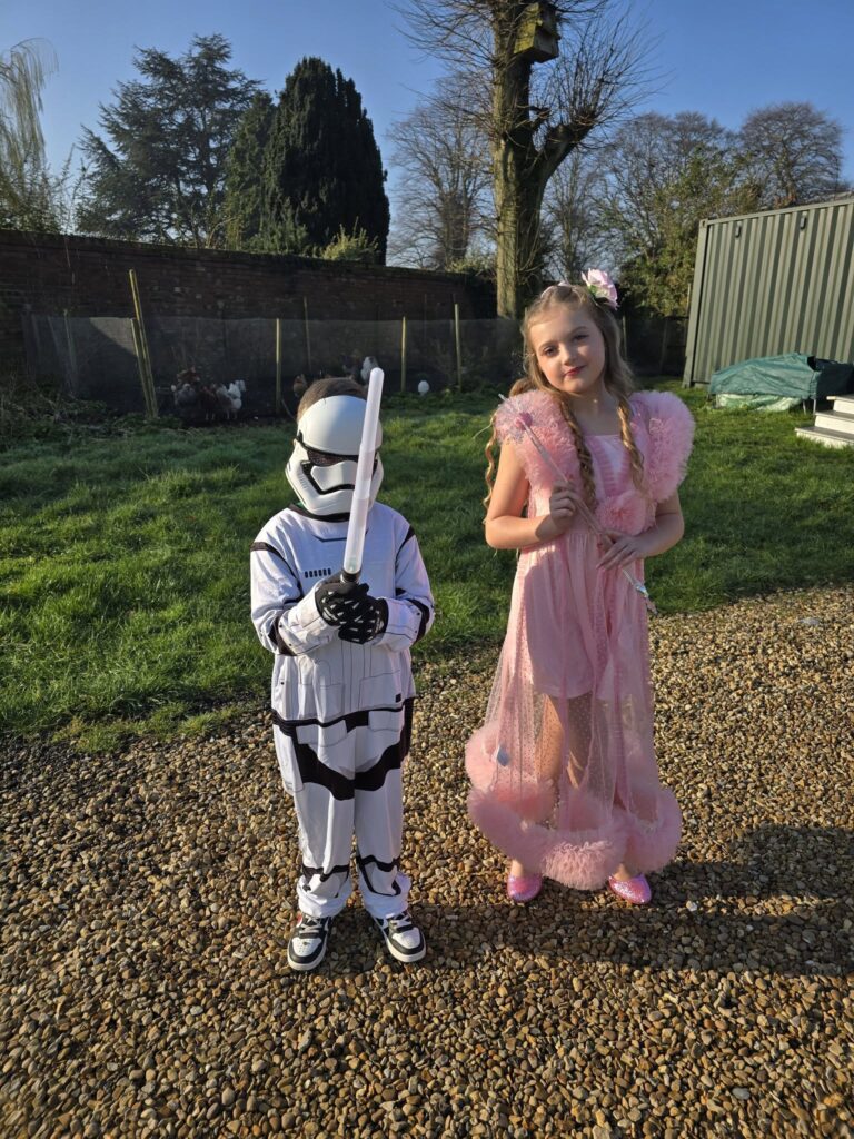 Jaxson Harris (10) as darth vader and Isla-Rae Harris (7) as Stitch, Long Sutton