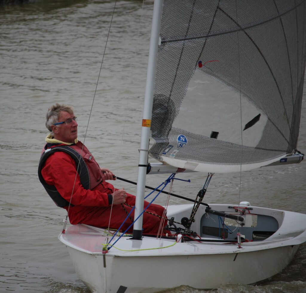It was Alan Chapman in the Laser who was away, followed by Helen Boyd in the Solo, Alan Cox in the Laser, Will Stabler (Laser), Geoff Tibbs in the Solo, Scourfield, Jorrit and Toby Schrauwers in the Kestral, Richard Stedman and James Ramp in the Comet and over the line starter Adam Stabler.