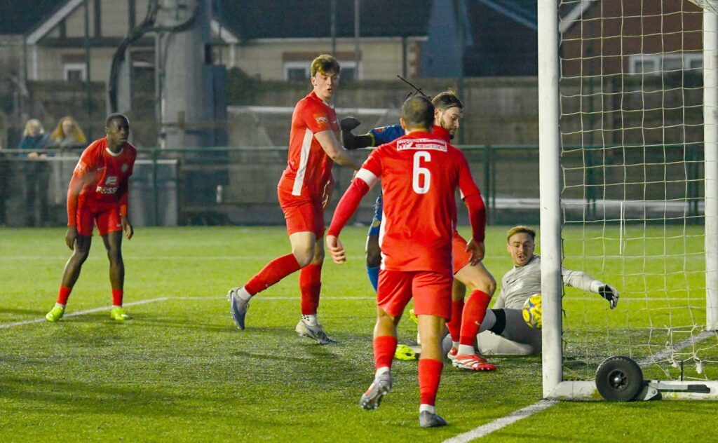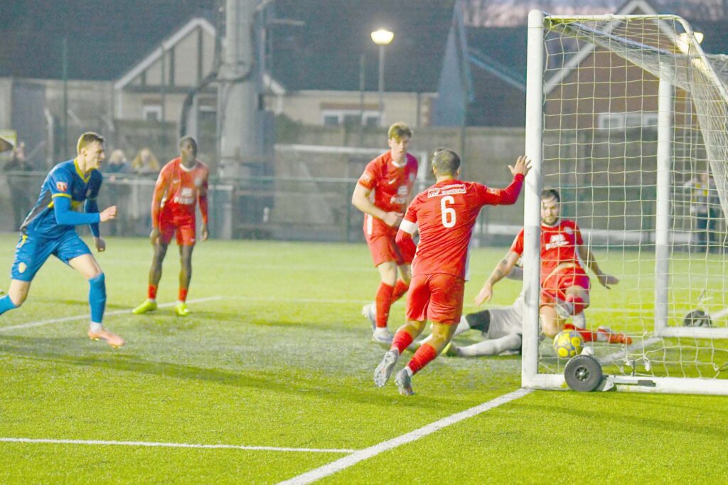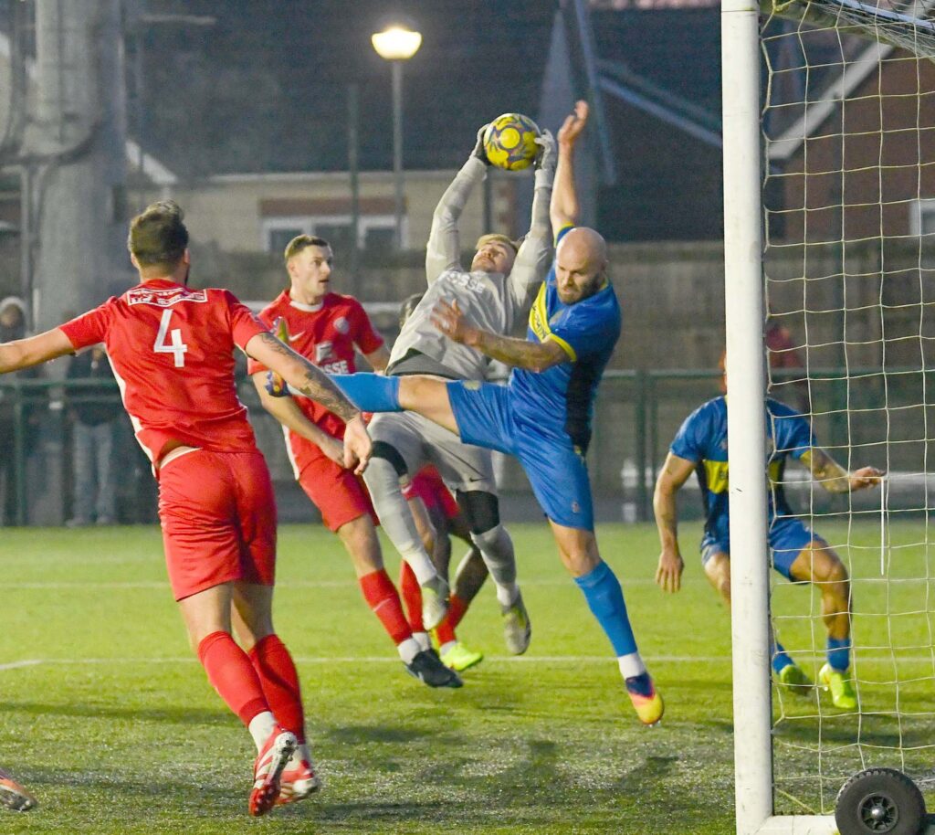 Spalding thought they’d got a goal back when Bart Cybulksi finished only for the linesman’s flag to go up, the